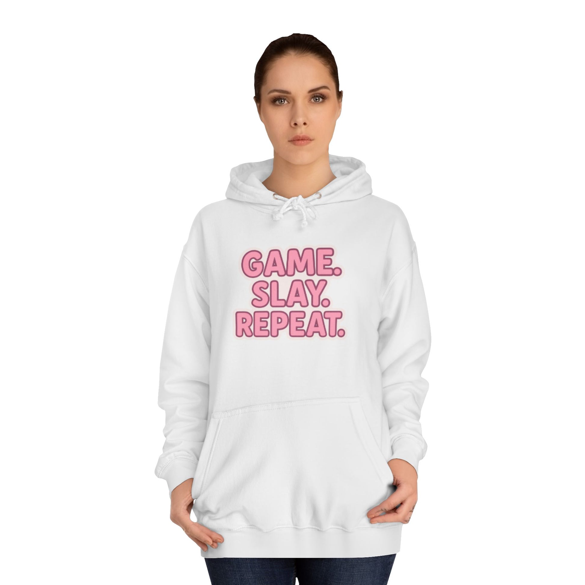Stay in your element with the Game Slay Repeat Hoodie — the perfect go-to for gamers who live the grind, serve looks, and keep winning. Soft, cozy, and designed for everyday wear, this hoodie brings together comfort and gamer attitude in one clean design.